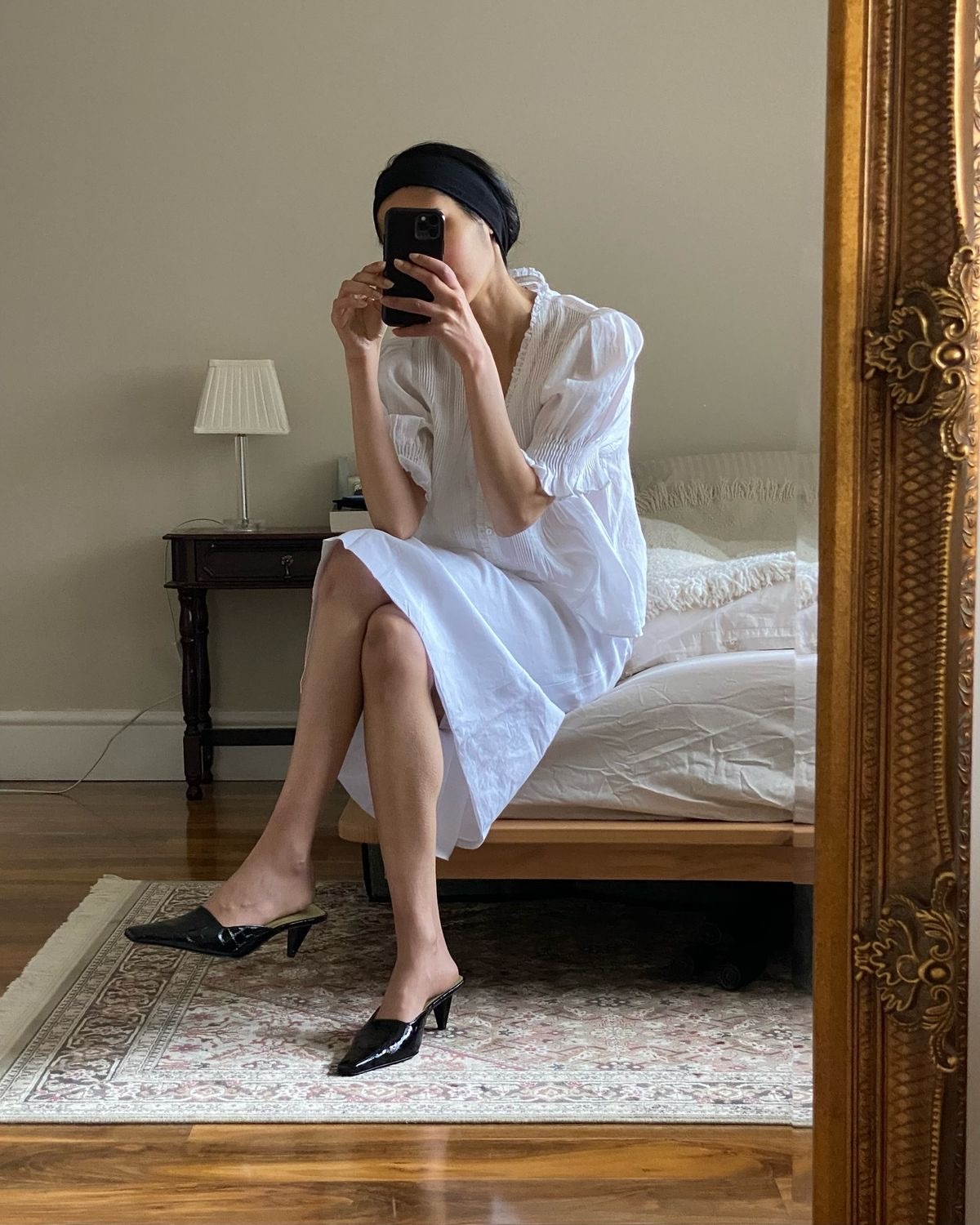 я забежала в кофейню на пять минут, чтобы выпить эспрессо перед загсом: на мне было американское винтажное платье в духе старого Голливуда. через год я сфотографировалась в зеркале с маленькой дочерью,
